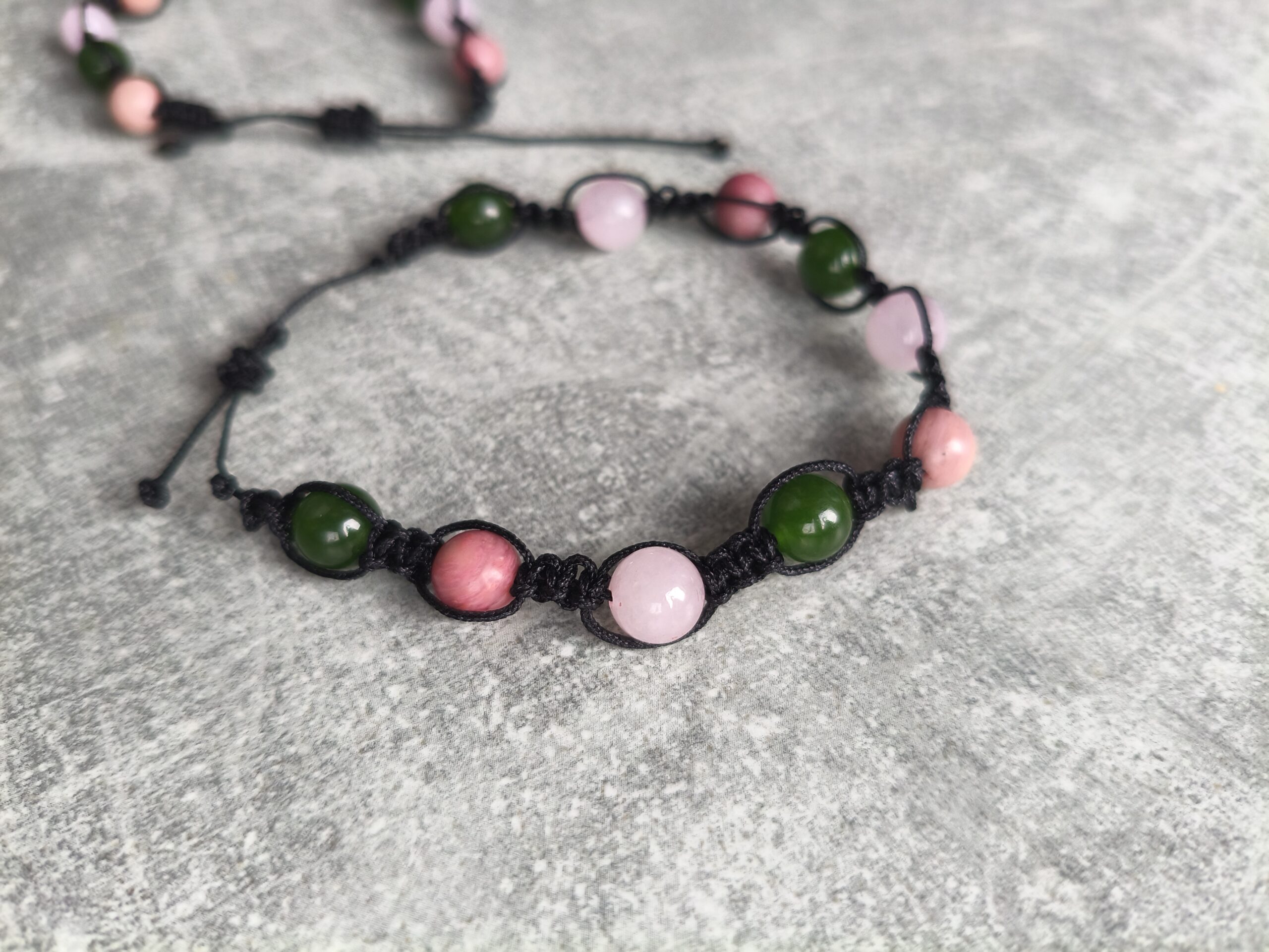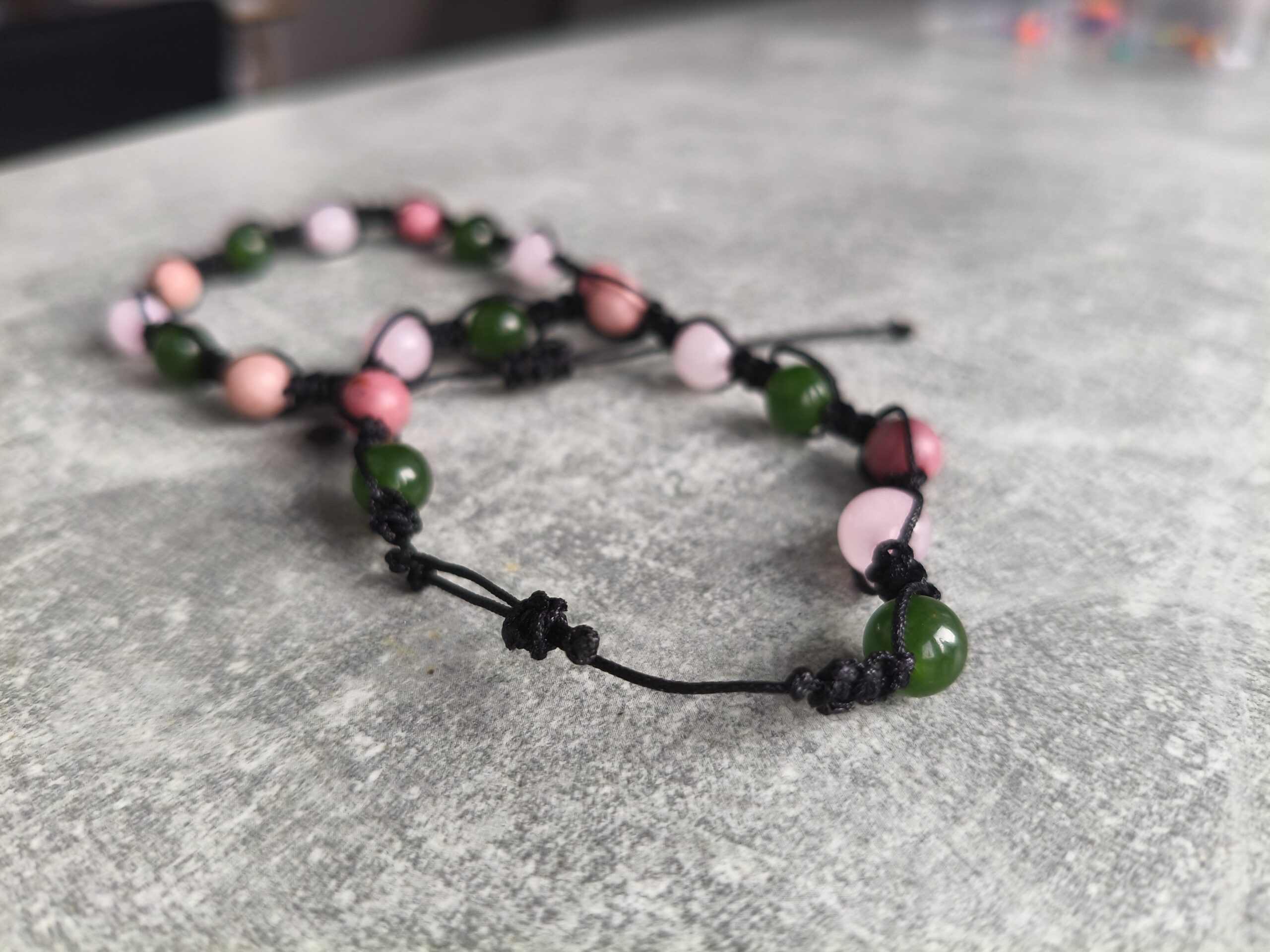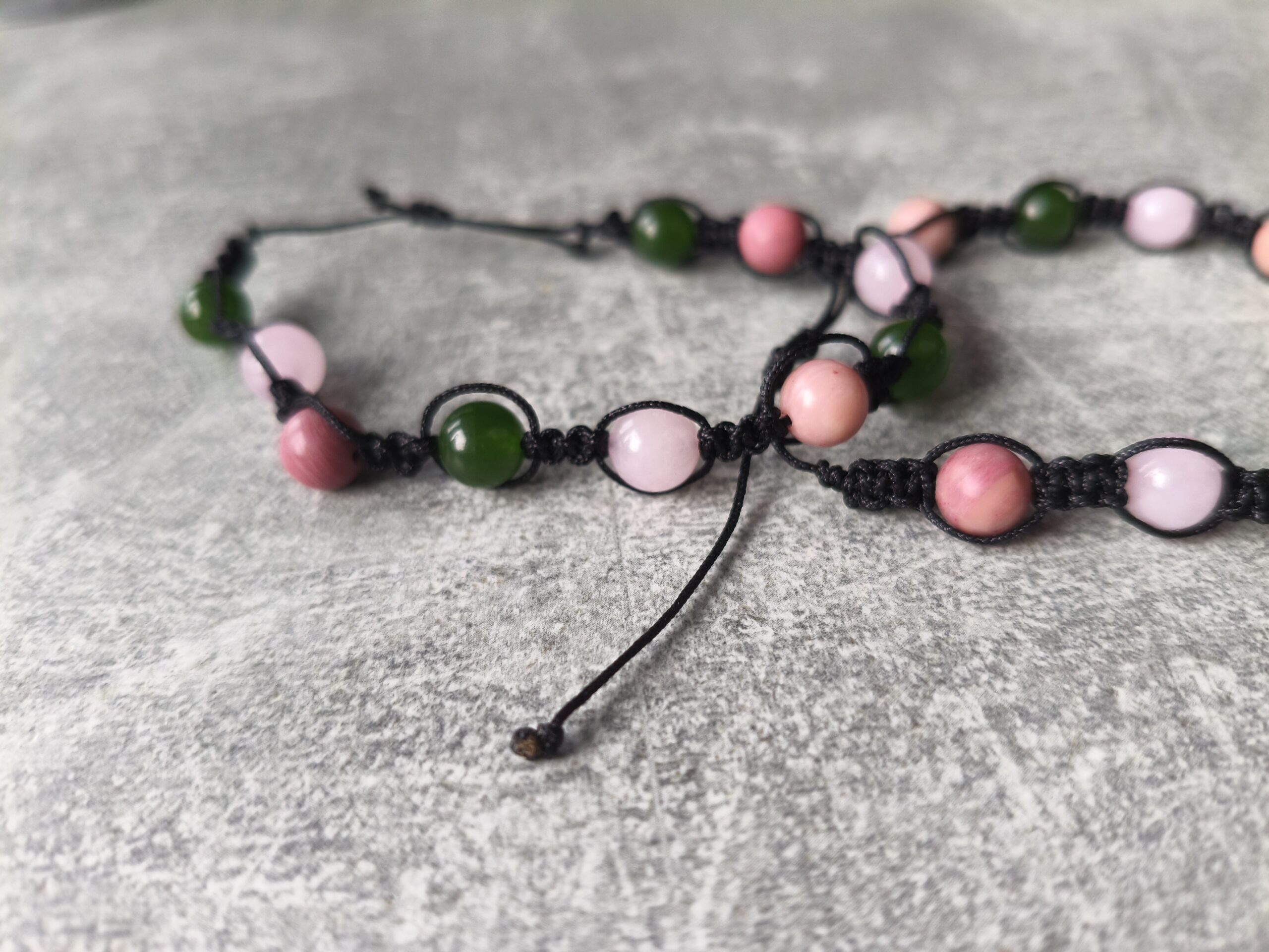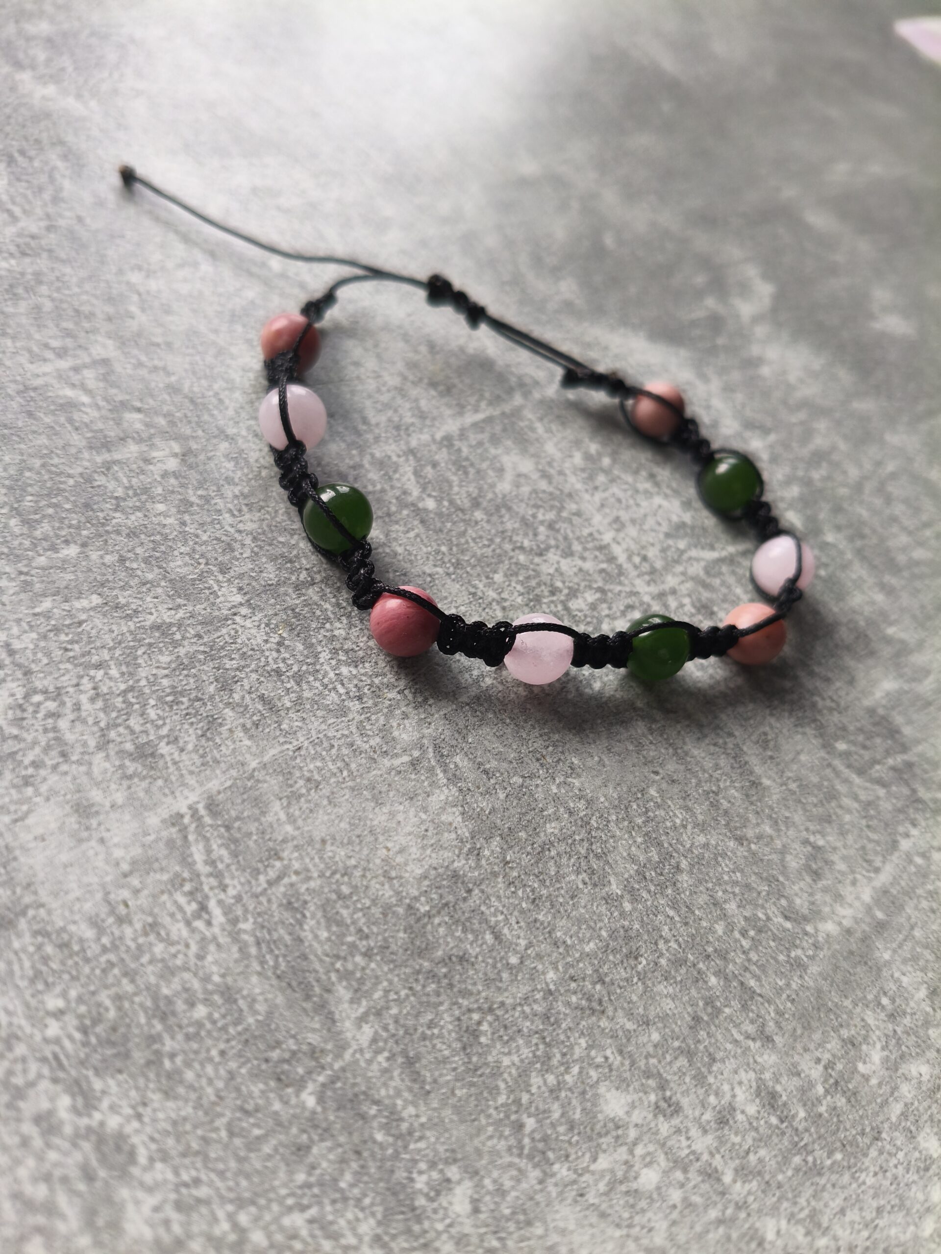 kamienie: kwarc różowy, rodonit, jaspis zielony